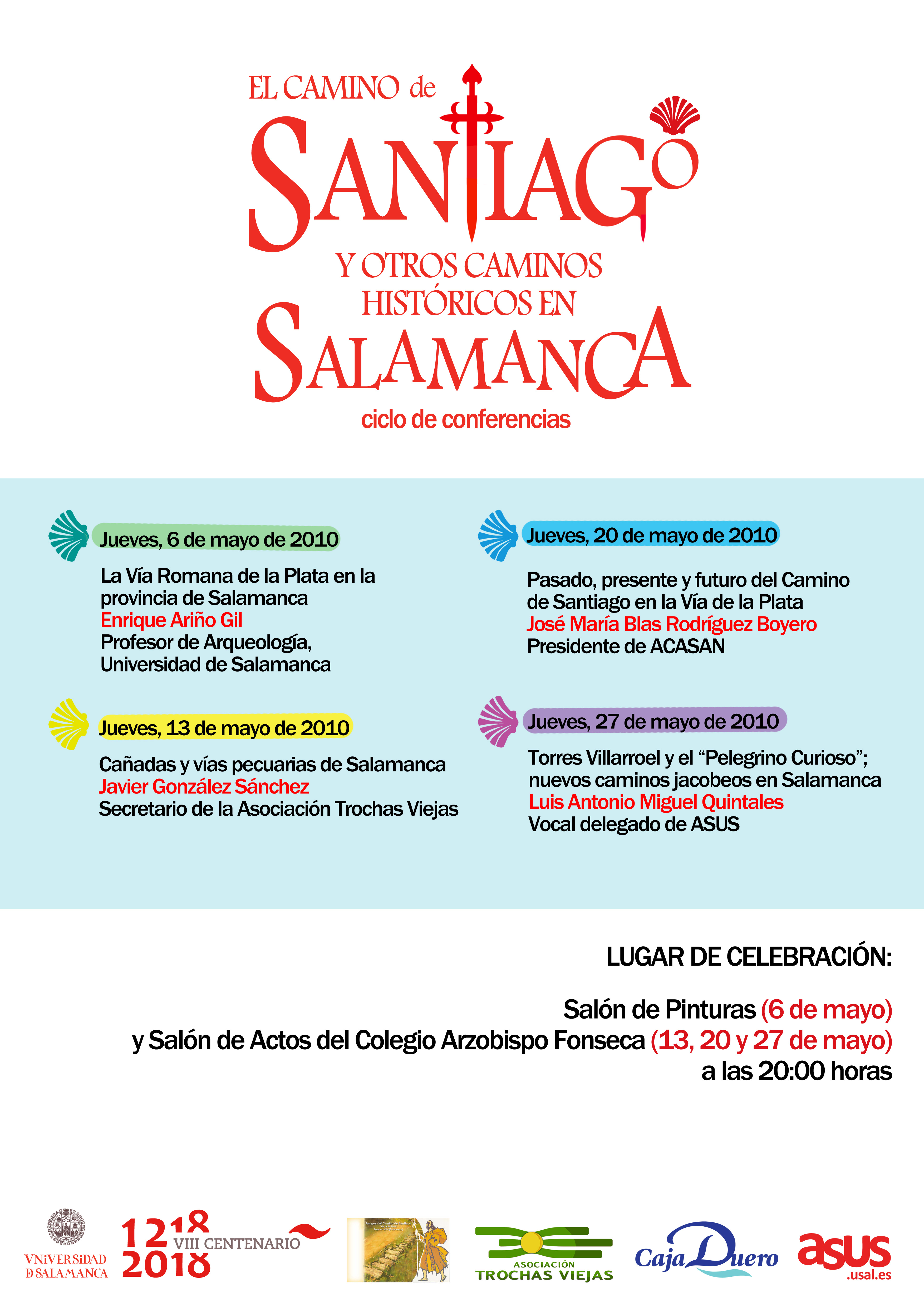 “Pasado, presente y futuro del Camino de Santiago en la Vía de la Plata”, José María Blas Rodríguez Boyero, presidente de ACASAN. A las 20 h. en el salón de actos del Colegio Arzobispo Fonseca.