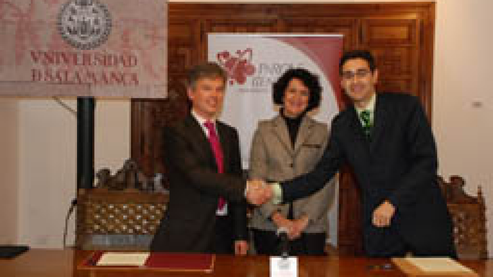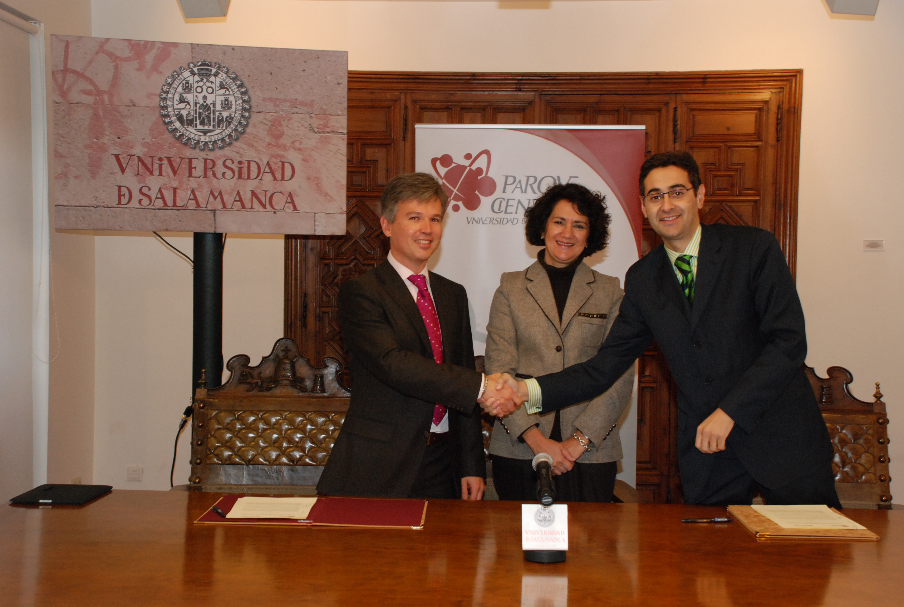 Salamanca, 30 de noviembre de 2010. La Fundación Parque Científico de la Universidad de Salamanca y la empresa Icinetic TIC han firmado esta mañana un convenio por el que la empresa, dedicada al desarrollo de software, dispondrá de un espacio de 11,7 metros cuadrados de oficina en la planta baja del nuevo edificio M2. El acto, que ha tenido lugar esta mañana en la Sala de Retratos de la Universidad de Salamanca, ha contado con la presencia de la vicerrectora de Investigación, Mª Ángeles Serrano García, el gerente del Parque Científico, José Miguel Sánchez Llorente, y Francisco González Ramos, en representación de la empresa.