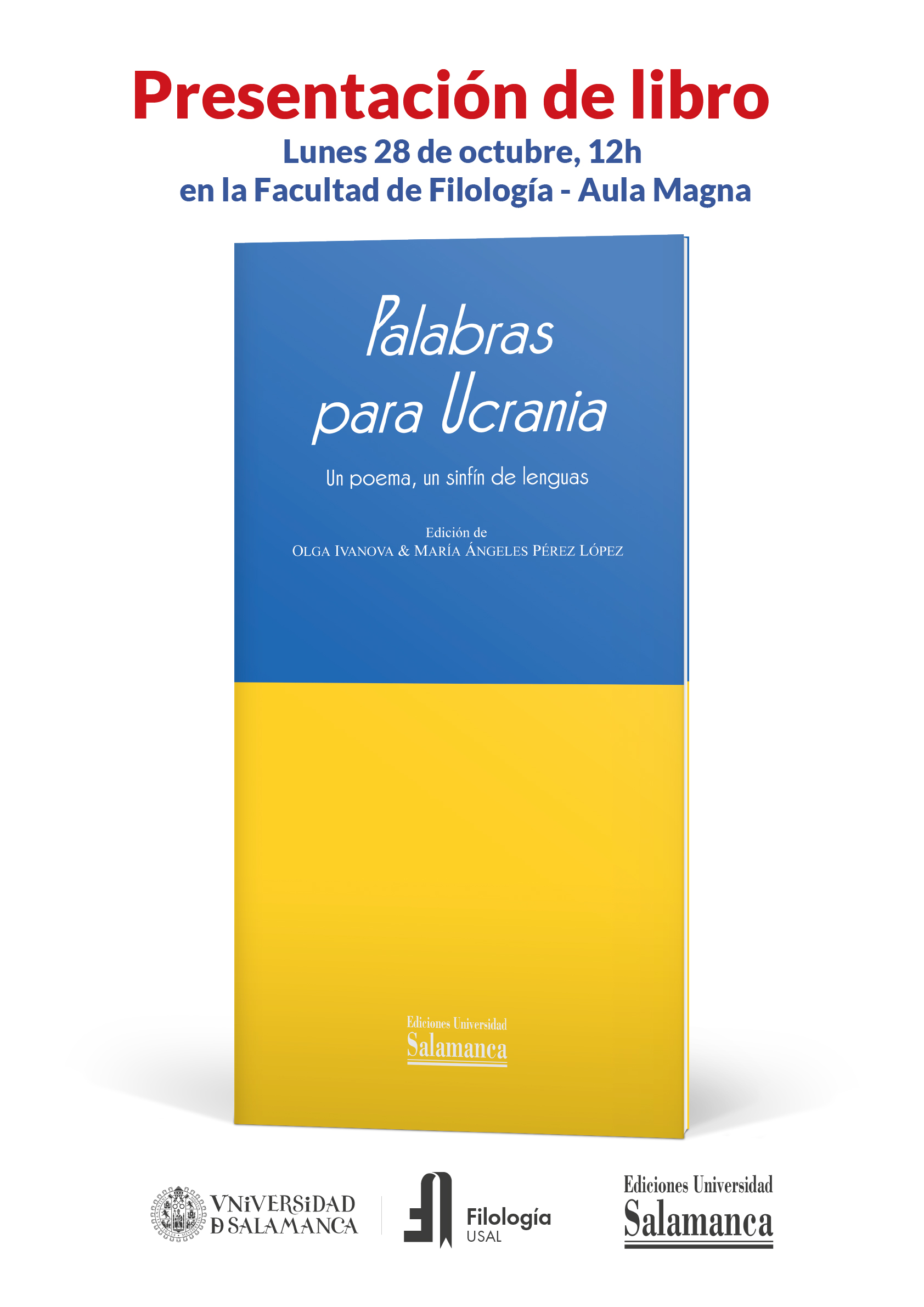 “Palabras para Ucrania” es el título del libro publicado por Ediciones Universidad de Salamanca que ha sido presentado esta mañana en la Facultad de Filología. La obra, coordinada por las profesoras Olga Ivanova y María Ángeles Pérez López, da continuidad a las iniciativas puesta en marcha en 2022 en solidaridad con el pueblo ucraniano, y ha contado con la participación de profesores e investigadores de la facultad en un proyecto coral.