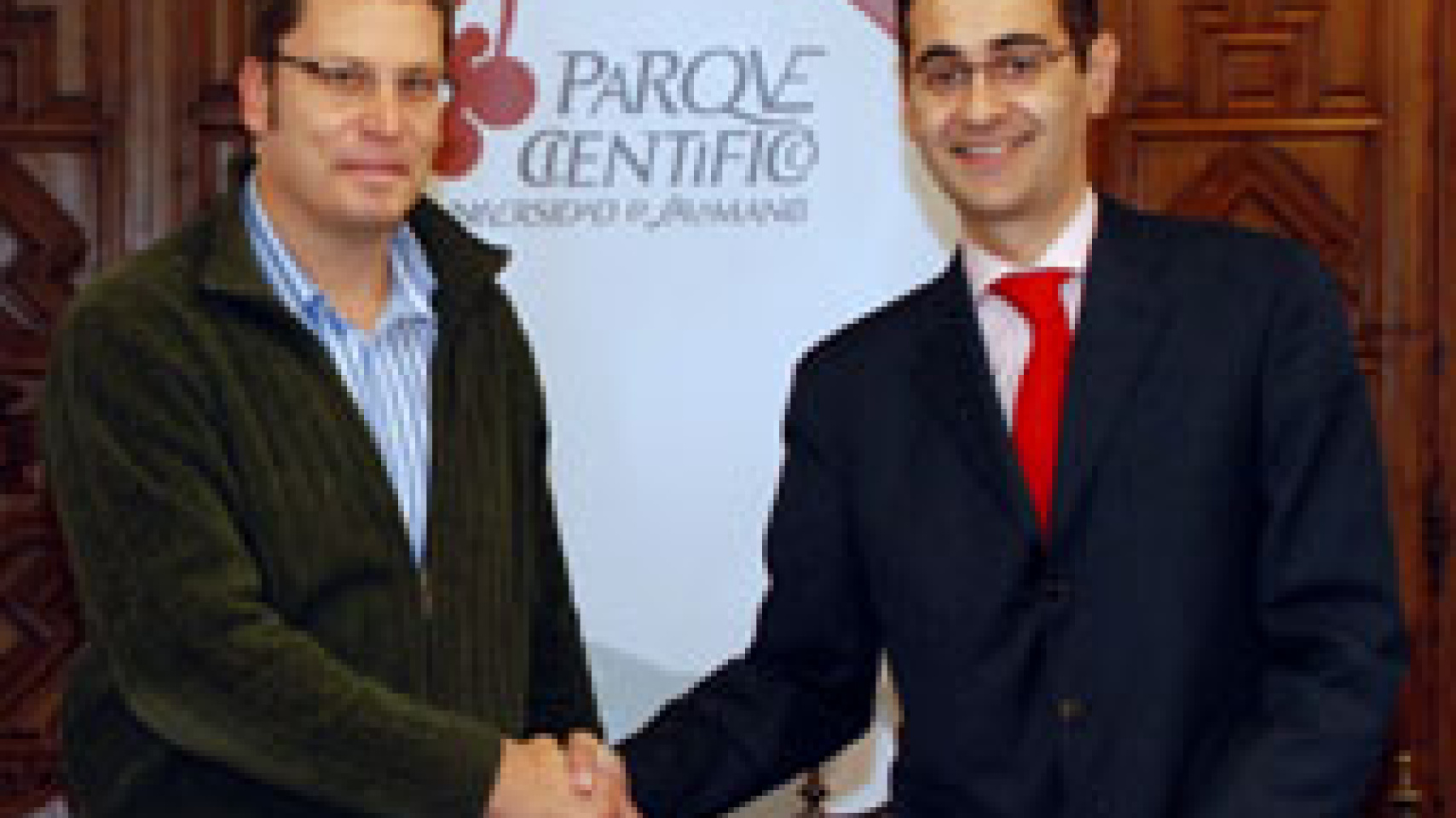 En la firma estuvieron presentes José Miguel Sánchez Llorente, gerente del Parque Científico de la Universidad de Salamanca; y Claudio Ponce Misito, director gerente de EMV Consultores.