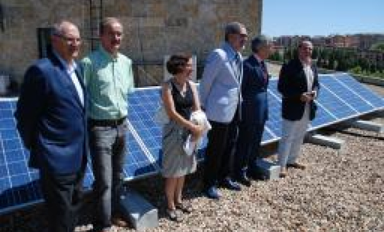El rector de la Universidad de Salamanca, José Gómez Asencio, y el director gerente de la Fundación General , Antonio Carreras, inauguraron las nuevas instalaciones de energía solar ubicadas en el Campus Unamuno.