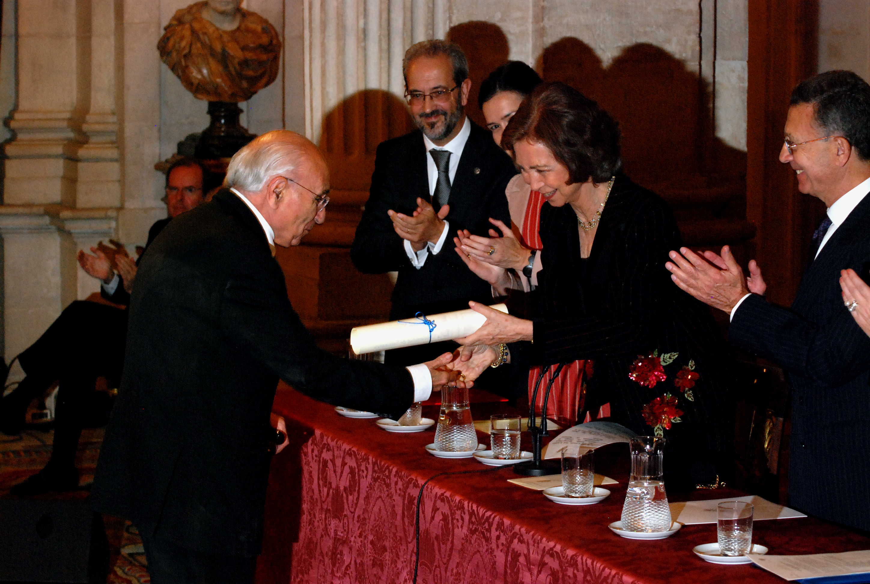 Su Majestad la Reina Doña Sofía hizo entrega del XIX Premio de Poesía Iberoamericana que lleva su nombre al escritor Francisco Brines el miércoles, 24 de noviembre, a las 19:00 horas en el Palacio Real de Madrid, en un acto que contó con la asistencia del presidente de Patrimonio Nacional, Nicolás Martínez-Fresno y Pavía, la ministra de Cultura, Ángeles González-Sinde, y del rector de la Universidad de Salamanca, Daniel Hernández Ruipérez.