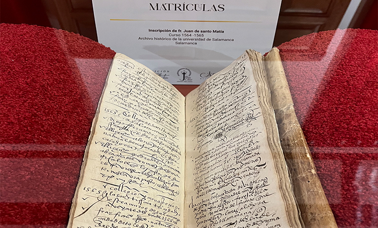 Los dos documentos, “de enorme valor histórico y simbólico”, son “La declaración de fray Juan de Santo Matía”, de 1564, conservada en el Archivo Histórico de la Universidad, y, en segundo lugar, a su inscripción en las matrículas universitarias del curso 1564–1565. “Dos piezas que no son solo documentos administrativos, sino testimonio vivo del paso de San Juan de la Cruz por nuestra institución”, a juicio del rector.