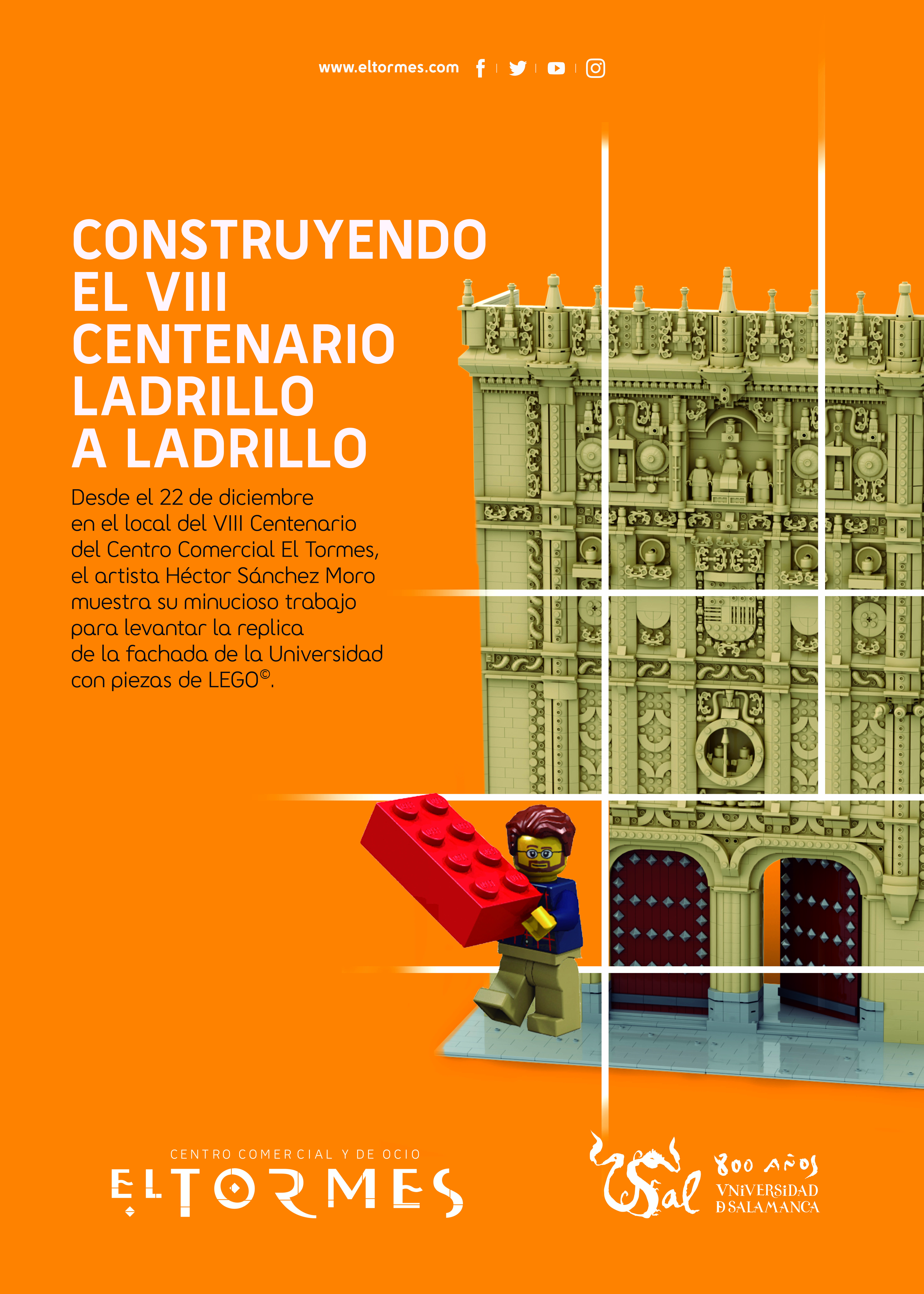 Con la llegada de la Navidad, el Centro Comercial El Tormes retoma un proyecto conjunto con la Universidad de Salamanca que quedó paralizado a mediados de marzo, con motivo de la crisis de la COVID-19. Se trata de la reproducción a escala y con piezas de LEGO de la fachada plateresca del Edificio de las Escuelas Mayores, a cargo del periodista salmantino Héctor Sánchez.