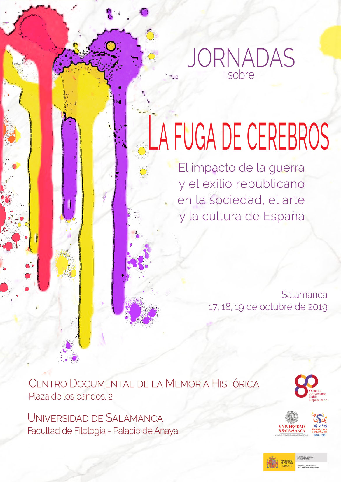 La Universidad de Salamanca (USAL) y el Centro Documental de la Memoria Histórica (CDMH) organizarán, entre el jueves 17 y el sábado 19 de octubre de 2019, las jornadas “La fuga de cerebros. El impacto de la guerra y el exilio republicano en la sociedad, el arte y la cultura de España”.