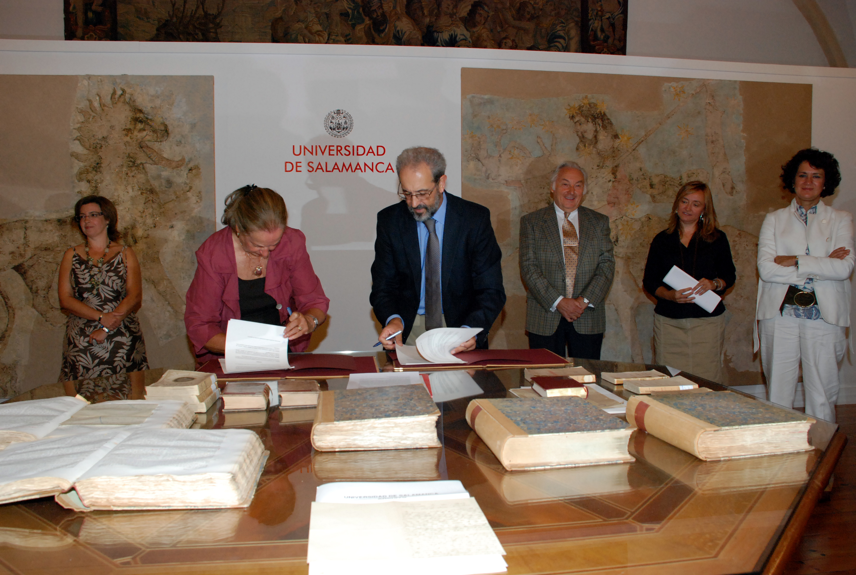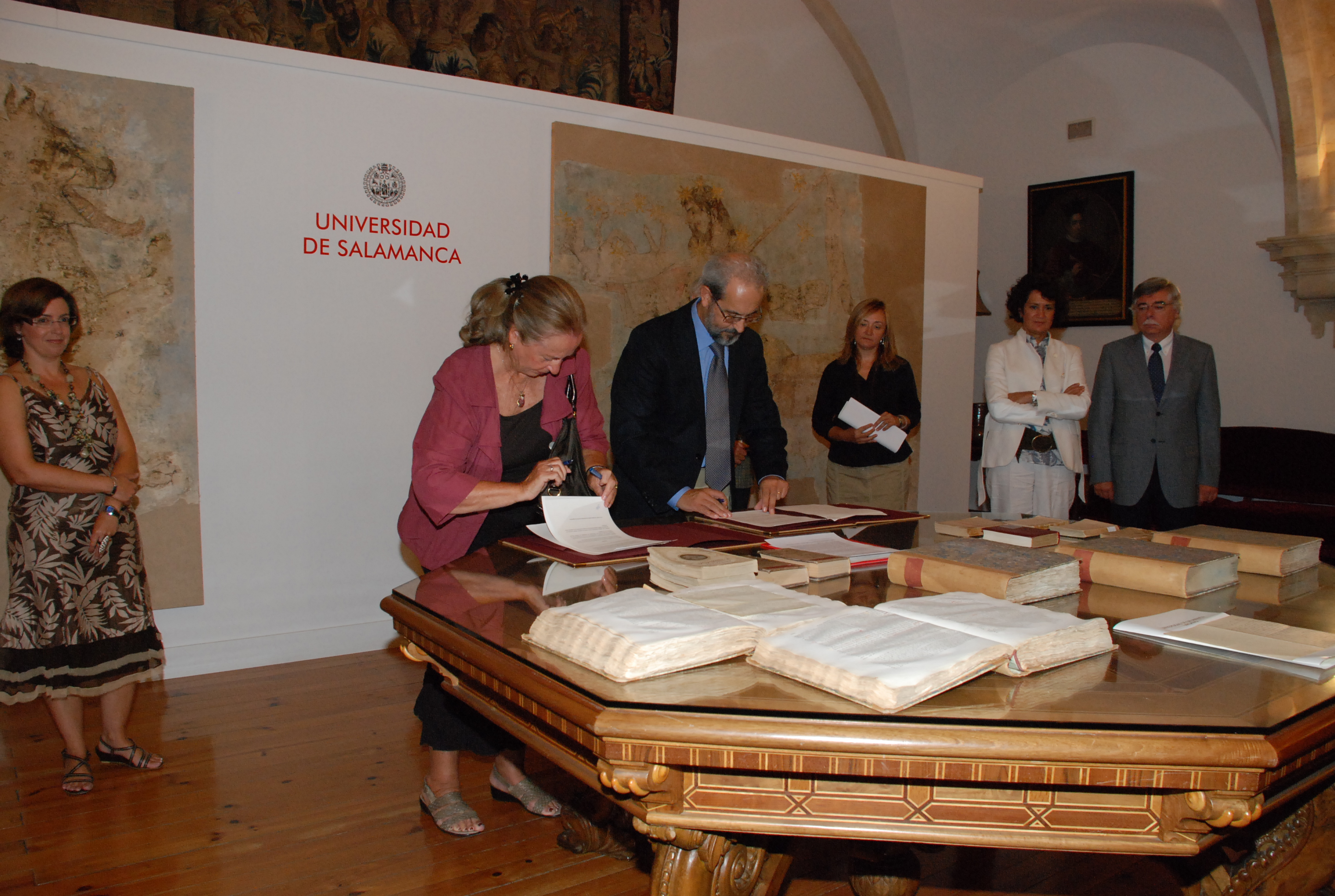Salamanca, 14 de septiembre de 2010. La Universidad de Salamanca y Vista Linda Foundation han suscrito en la mañana de hoy un acuerdo marco de colaboración para promover el intercambio de conocimiento científico y cultural, así como para la difusión del conocimiento y la cultura a través de la extensión universitaria y la formación a lo largo de toda la vida. Entre los programas de cooperación destaca la cesión de obras artísticas y bibliográficas con fines de investigación y difusión.
