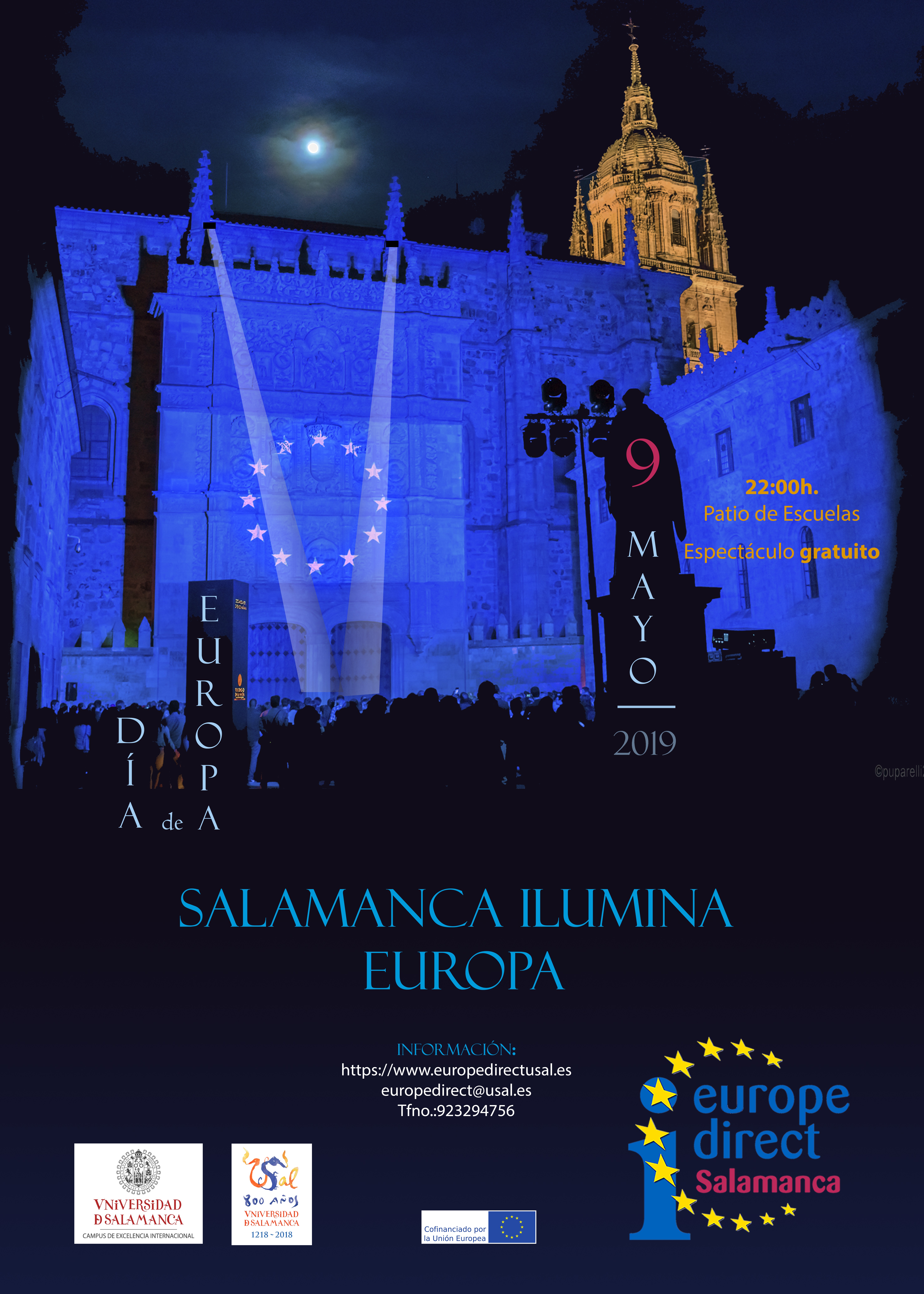 Se iluminará en azul europeo y proyectará la bandera de la UE en la fachada rica de la Universidad para promover la visibilidad de la Unión Europea y del Centro de información Europe Direct Salamanca, ubicado en la Biblioteca Francisco de Vitoria (Campus Unamuno).