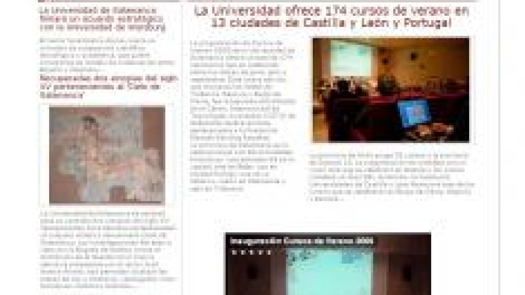 Este nuevo número dedica especial atención a los Cursos de Verano 2009 de la Universidad de Salamanca, cuya oferta supera los 170 programas repartidos en trece sedes de Castilla y León y Portugal. La revista incorpora un vídeo del acto inaugural celebrado en el Centro Internacional de Tecnológicas Avanzadas (CITA), de Peñaranda de Bracamonte, dependiente de la Fundación Germán Sánchez Ruipérez (FGSR), así como entrevistas con Antonio Basanta, director general de la Fundación GSR y con Joaquín Pinto, director del CITA.