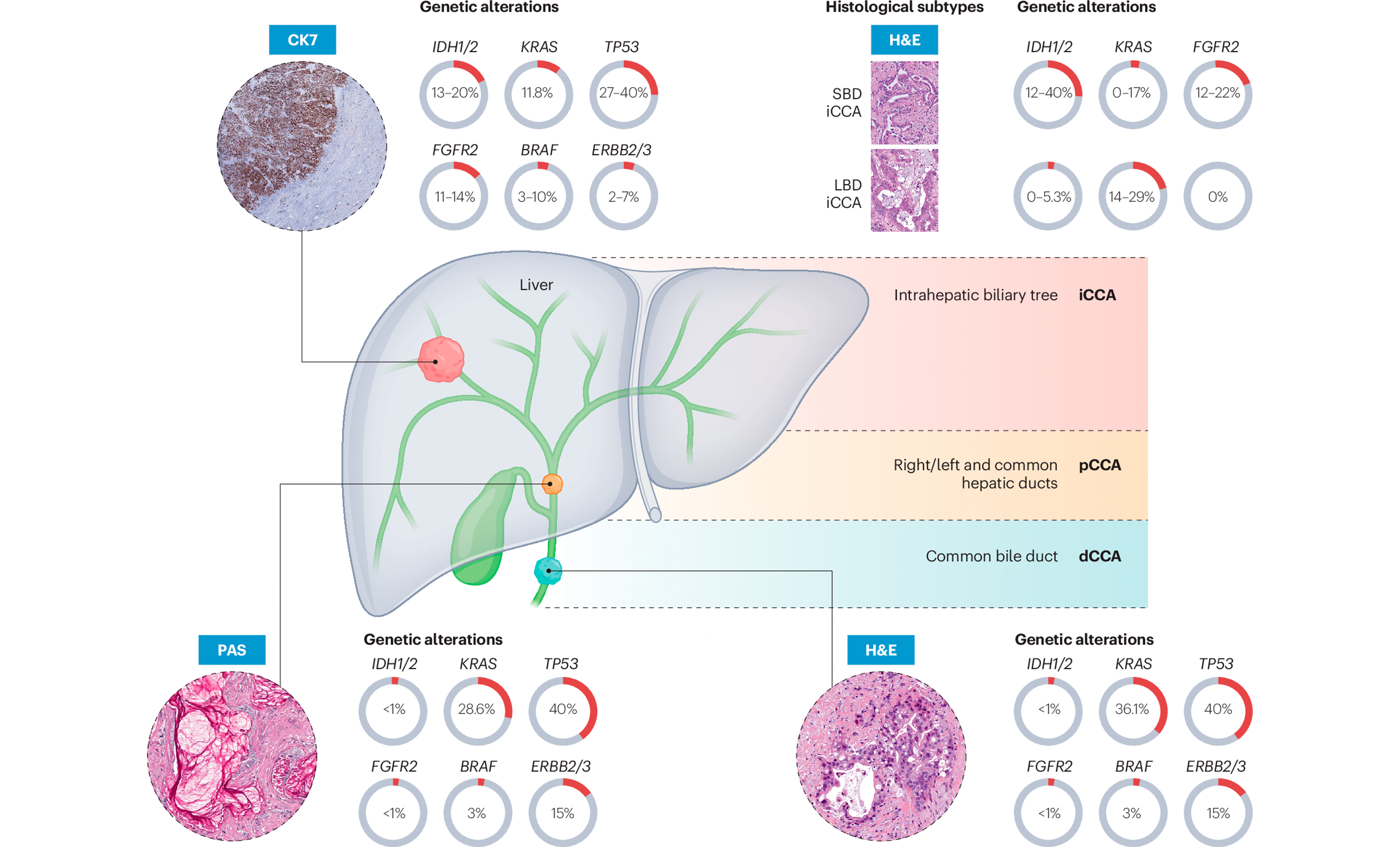 Cholangiocarcinoma 2026: status quo, unmet needs and priorities. Banales JM*, Rodrigues PM*, Affò S, Andersen JB, Aspichueta P, Boulter L, Bridgewater J, Calvisi DF, Cardenas A, Cardinale V, Carpino G, Coulouarn C, Dopazo C, Edeline J, Fabris L, Folseraas T, Forner A, Goeppert B, Heikenwalder M, Kendall TJ, Khan SA, Klümpen HJ, Koerkamp BG, Lamarca A, Lindsey S, Lleo A, Luedde T, Macias RIR, Morement H, Nault JC, Olaizola P, Perugorria MJ, Raggi C, Rimassa L, Saborowski A, Valle JW, Vithayathil M, Vogel A, Braconi C; International CCA Consensus Consortium. Nat Rev Gastroenterol Hepatol 2026 Jan;23(1):65-96. doi: 10.1038/s41575-025-01153-w