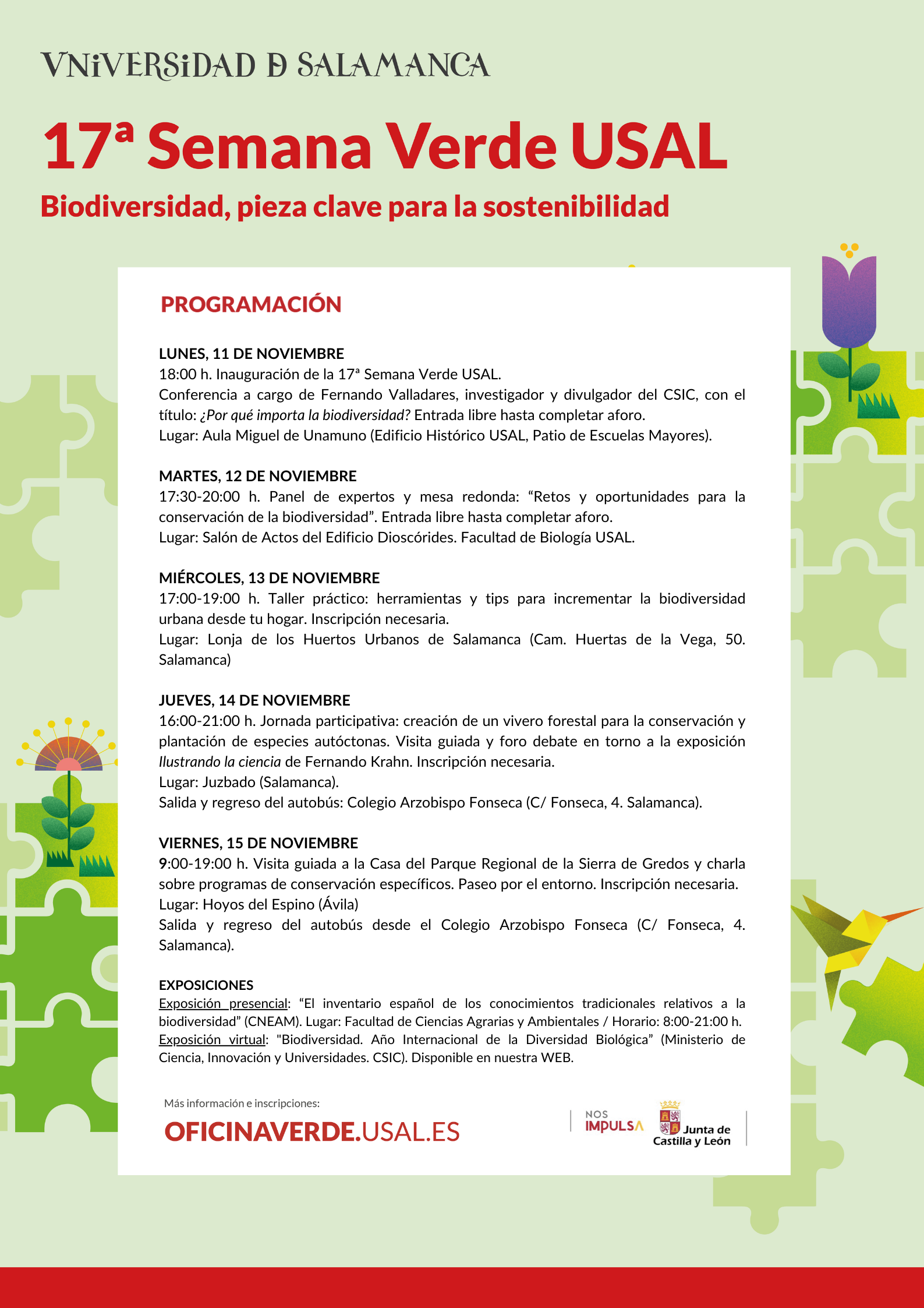 La programación completa de la XVII Semana Verde de la USAL puede consultarse en esta página web: https://oficinaverde.usal.es/17a-semana-verde-usal/